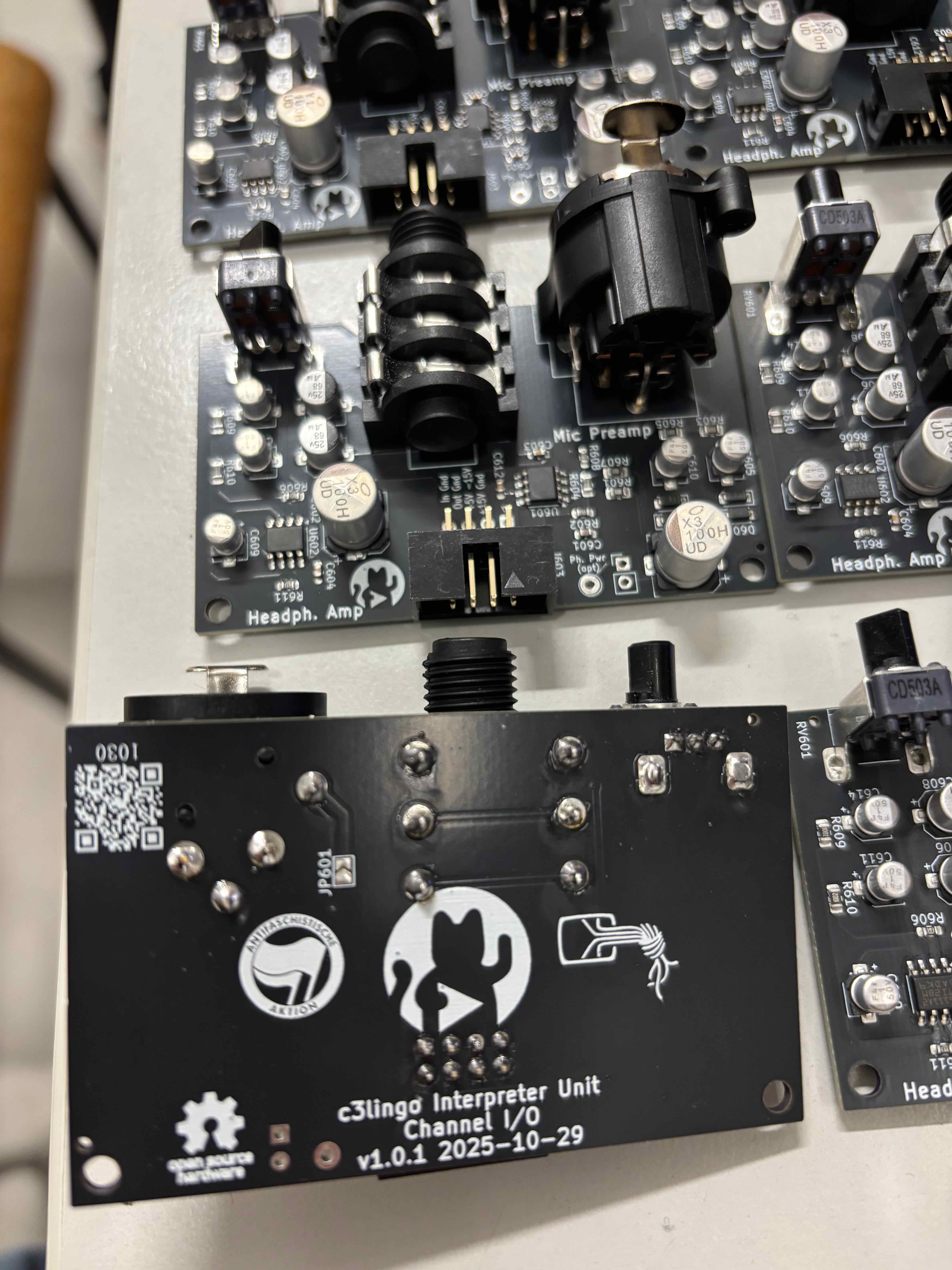 Schaltpläne und Board-Layouts: http://github.com/c3lingo/c3lingo-interpreter-unit